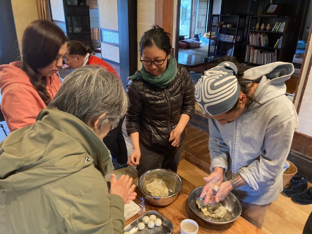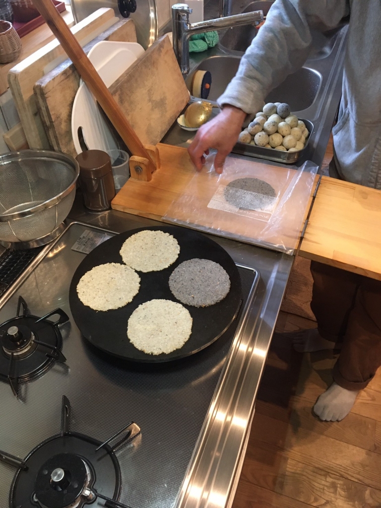 外ではバーベキューの火を起こし、調味料に漬け込んでおいた寧楽共働学舎の美味しい豚肉を焼きました。