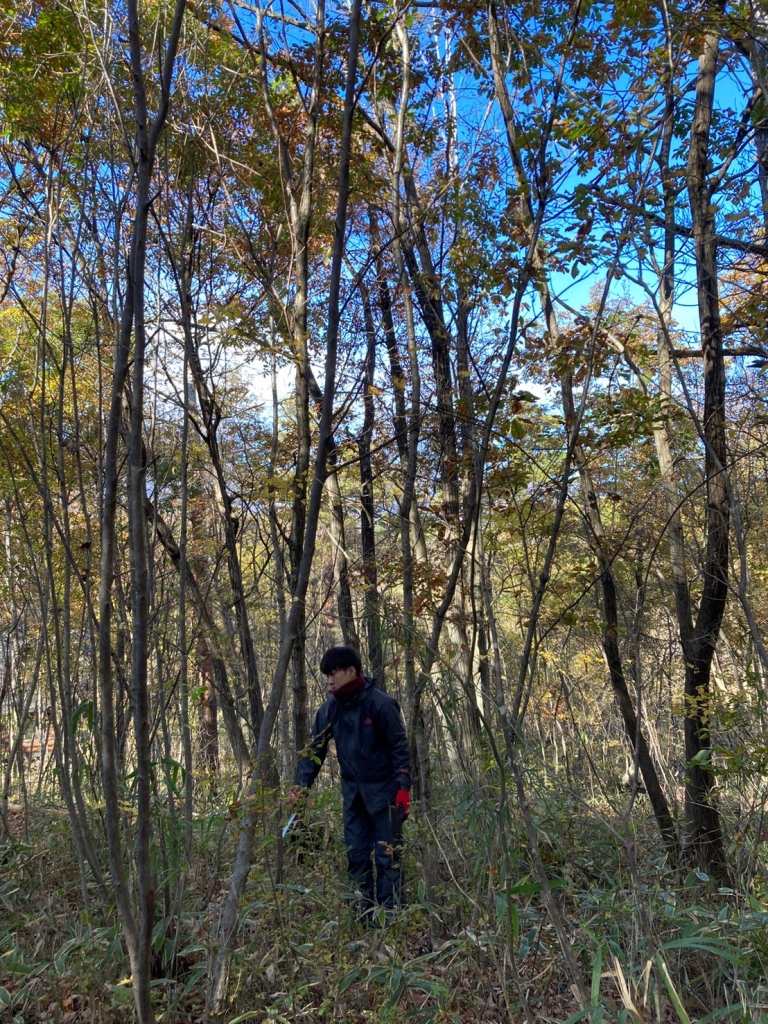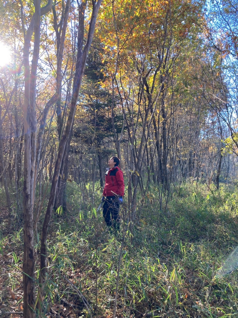 今まで森に入って木切りをした時には、強気でノコギリを使いまくって、終わった時にやっとパッと周りを見渡してみたら、ちょうどいいなんてものじゃなく、ただ切り倒されて何もなくなってしまったということが多かったです。無意識に上から目線で見ていたんだろうな…と。自分がこの空間にいたら、どこに空気が通って欲しいか、どこが競い合って苦しいから楽にして欲しいか。そんな横に並んだ視線で見ることができました。