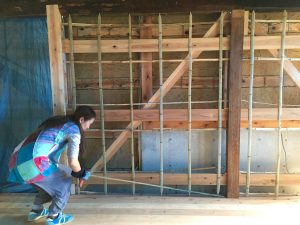 久しぶりの「柳澤たてもの塾」は竹小舞と土塗りという、最も癖になる作業で再開しました。