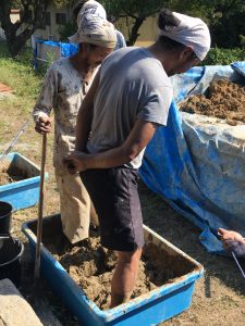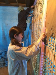 僕も本当は大工…というあずみくん 土を塗ってる小山さんかっこいい