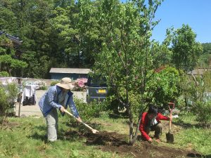 午後の部が始まる前に、男性陣にお願いして、ちょっと植木の苗の移動。
