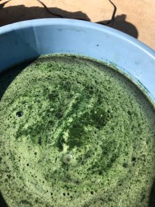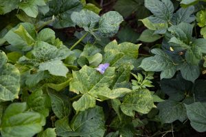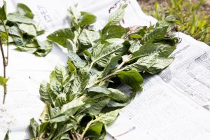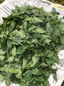 朝採りの藍の葉っぱをちぎって集め