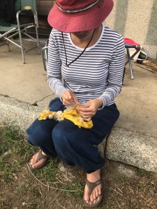 絞り模様を入れたい人は思い思いに絞りの細工もして