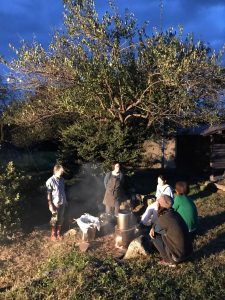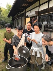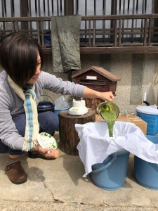 フクギを煮出す作業