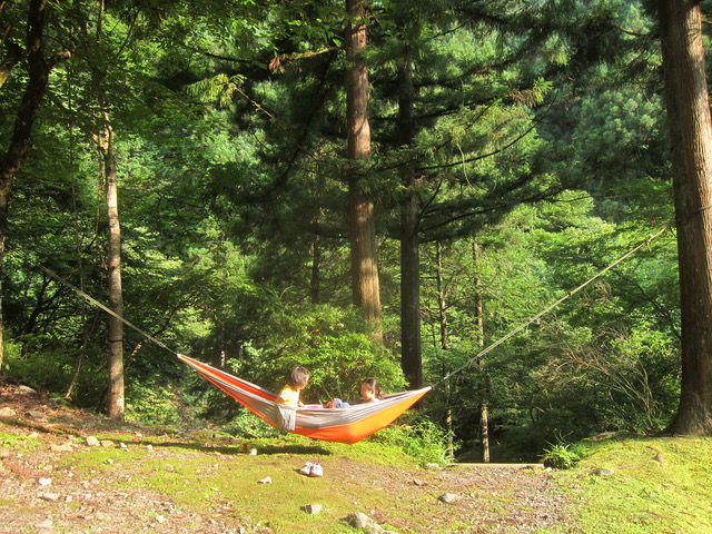 川遊び、滝飛び込み、秘密基地作り、おにごっこ、木登り、ハンモックで昼寝、薪割り、木工クラフト、山歩きや探検