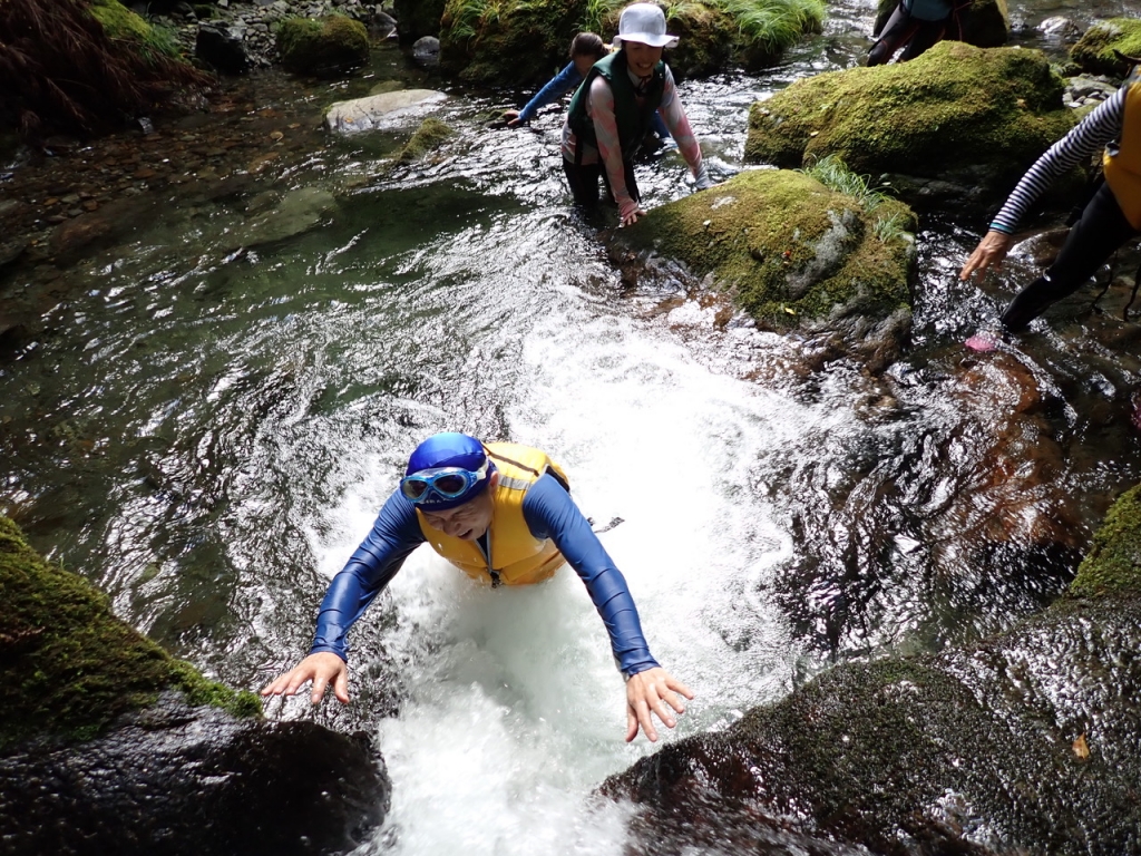「自然とつながる」と「身体で考える」を意識しながら時間を過ごしたのですが、やはり初めてやった川遊びというのがすごい何とも言えない新鮮さと、自分の思ってもみなかったエネルギーみたいなものを感じさせられた、そんなセッション(体験)でした。水の流れと苔むした岩々が織りなす沢の持つ自然の雄大さや偉大さを感じました。その中で自分が遊べたというのも感動でした。悠久とか永遠とか太古とかいうことを感じることができて、自然の営みの雄大さを感じられて、自然とつながれた時間でした。