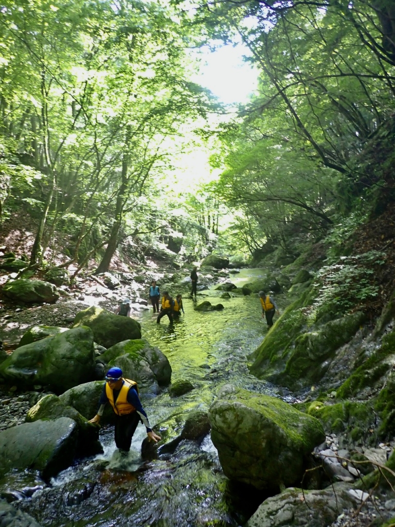 昔スタッフで来た若者が、ここの沢の流れや大きな岩の間を歩いていて、ここって天国ですか?と真面目な顔で聞いたのを思い出します。気持ちよさがすごいですから、そう思う気持ちがわかるような気がしました。