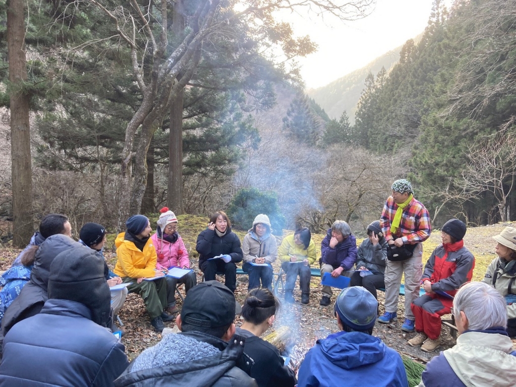 ●たき火をする場の状況の把握、たき火に適した樹種や薪の見分け方、安全と環境への配慮を学ぶ