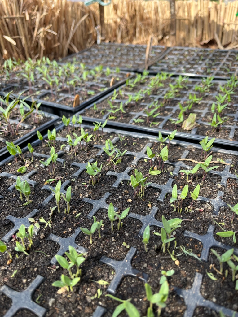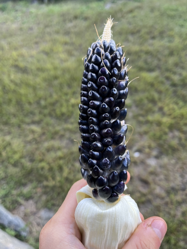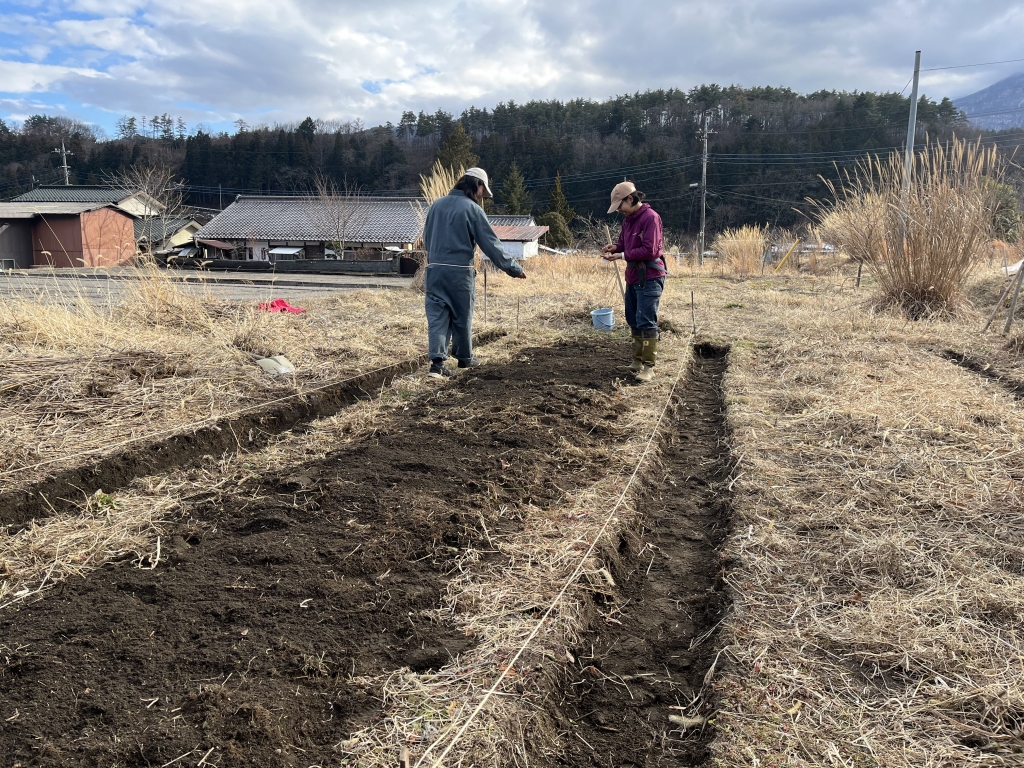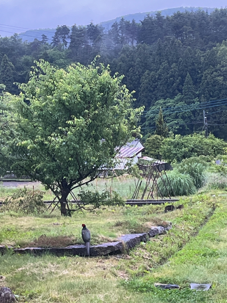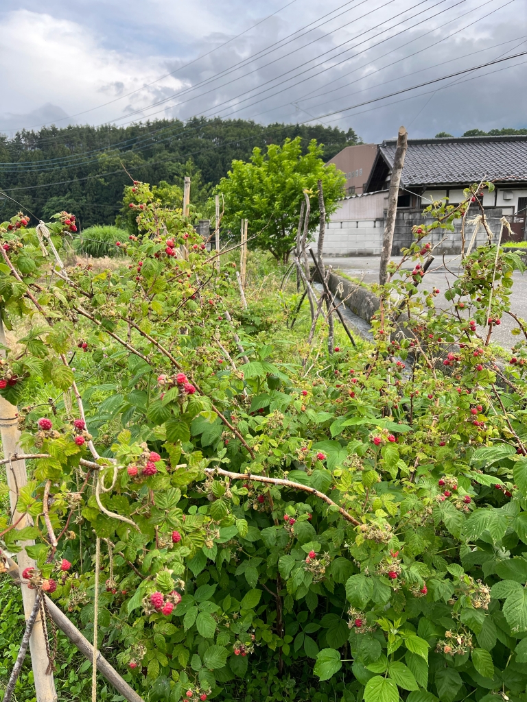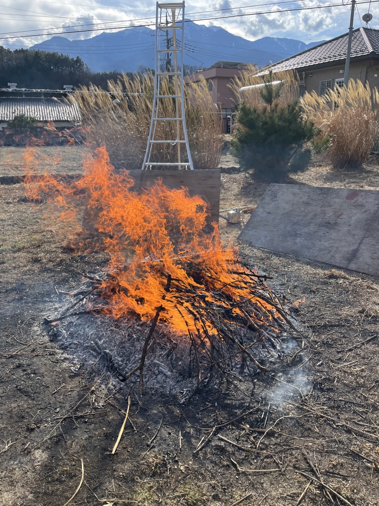 竹とモロヘイヤの枯れ枝で豆の支柱づくり