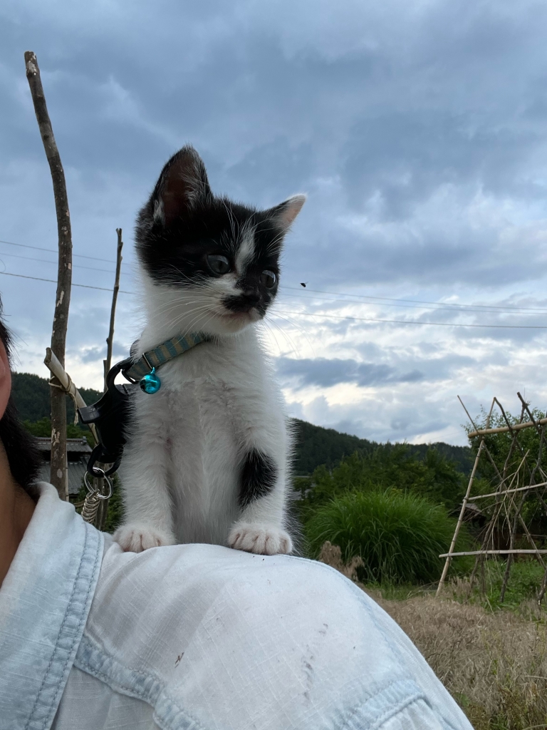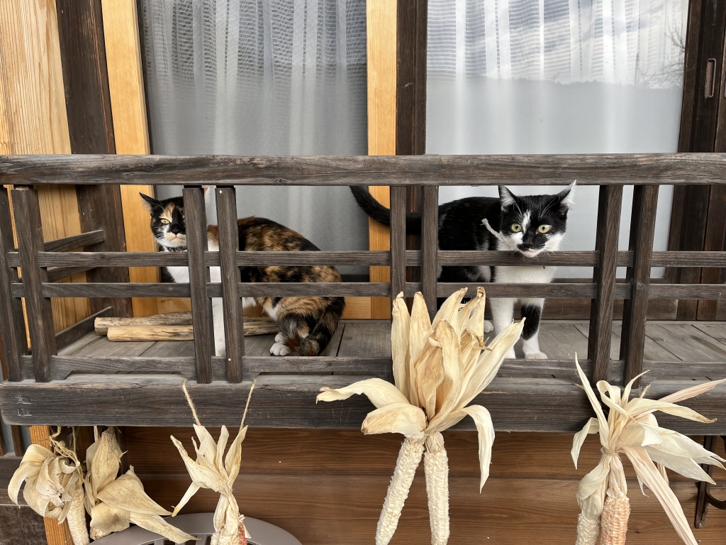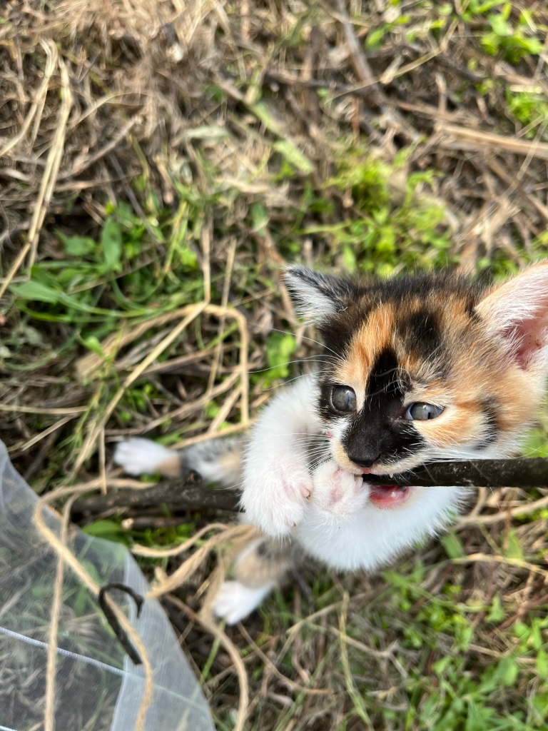 ダビデの星の枯れ枝と格闘する“ちゃちゃ”