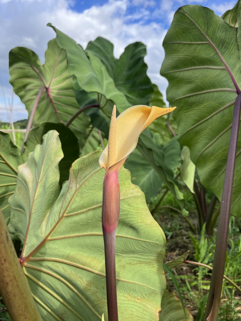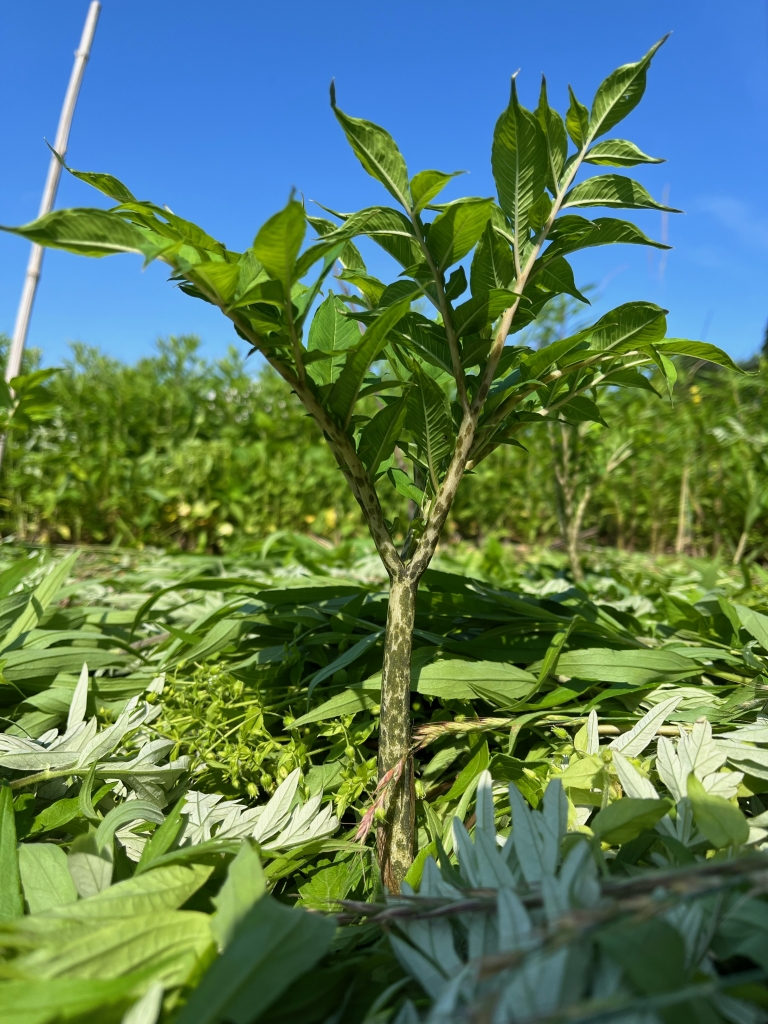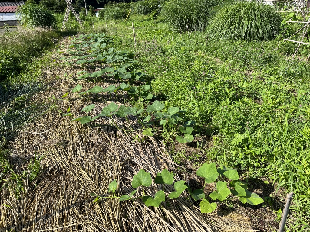 セイタカアワダチソウと共に育つ蒟蒻芋