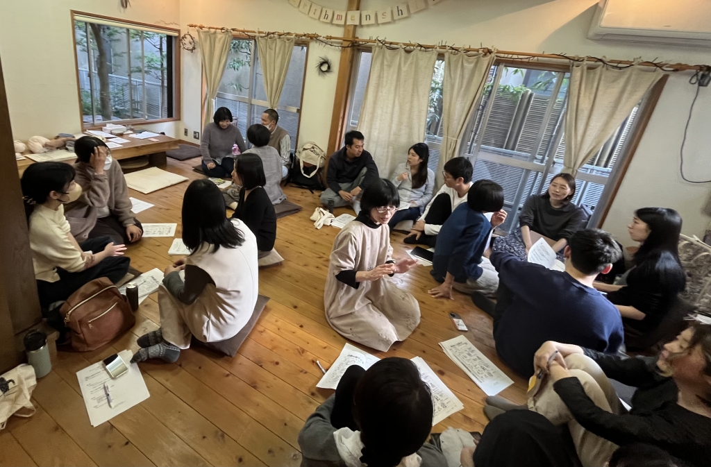 4月7日(日)10代から40代までの男女が色々な場所から吉祥寺の古い家に集まってくださり、笑いとたくさんの気づきに溢れた時間を持つことができました。久しぶりに現役の助産師さんや看護師さんの参加があったのも嬉しかったです。