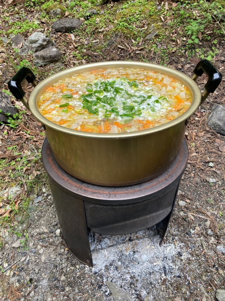 ■お昼は薪で作った美味しい豚汁を楽しみます。