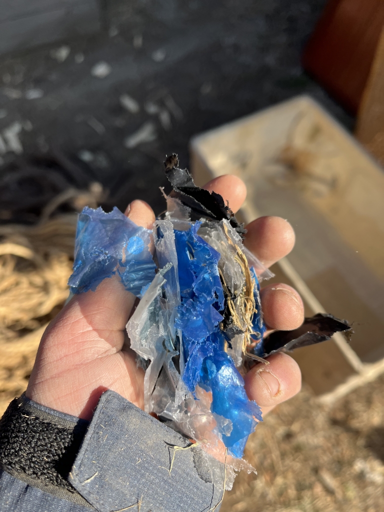 その一方で、すぐにバラバラに朽ちていくビニールやプラスチック。