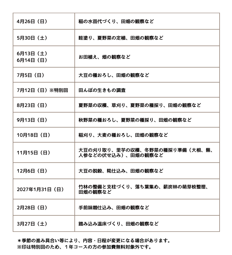▪️毎月1回活動日が設定され、田畑や森を学び場として月毎に様々な活動を行います。