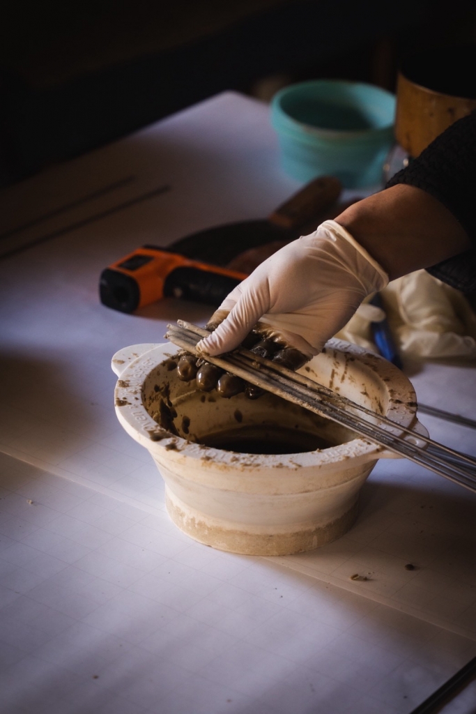 手の速度や気温、力の掛け具合でおひとりずつ結果が異なる製法です。