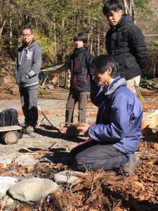 たき火づくりでは、天気が良かったこともあり、大きな失敗はなく安定して作ることができたと思います。窮地に追い込まれた時や山などで寒くてどうしようもないとき、どんな時でもたき火を起こせることは必要なサバイバルの技だと思いましたし、これからは応用してどんな状況でも安定した火づくりができるようになりたいと思いました。