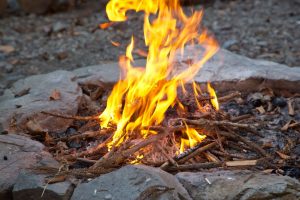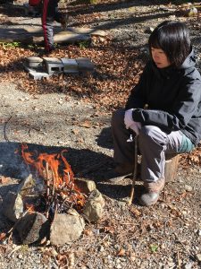 カマドや新聞紙などを使わず 現地の薪を拾い集め